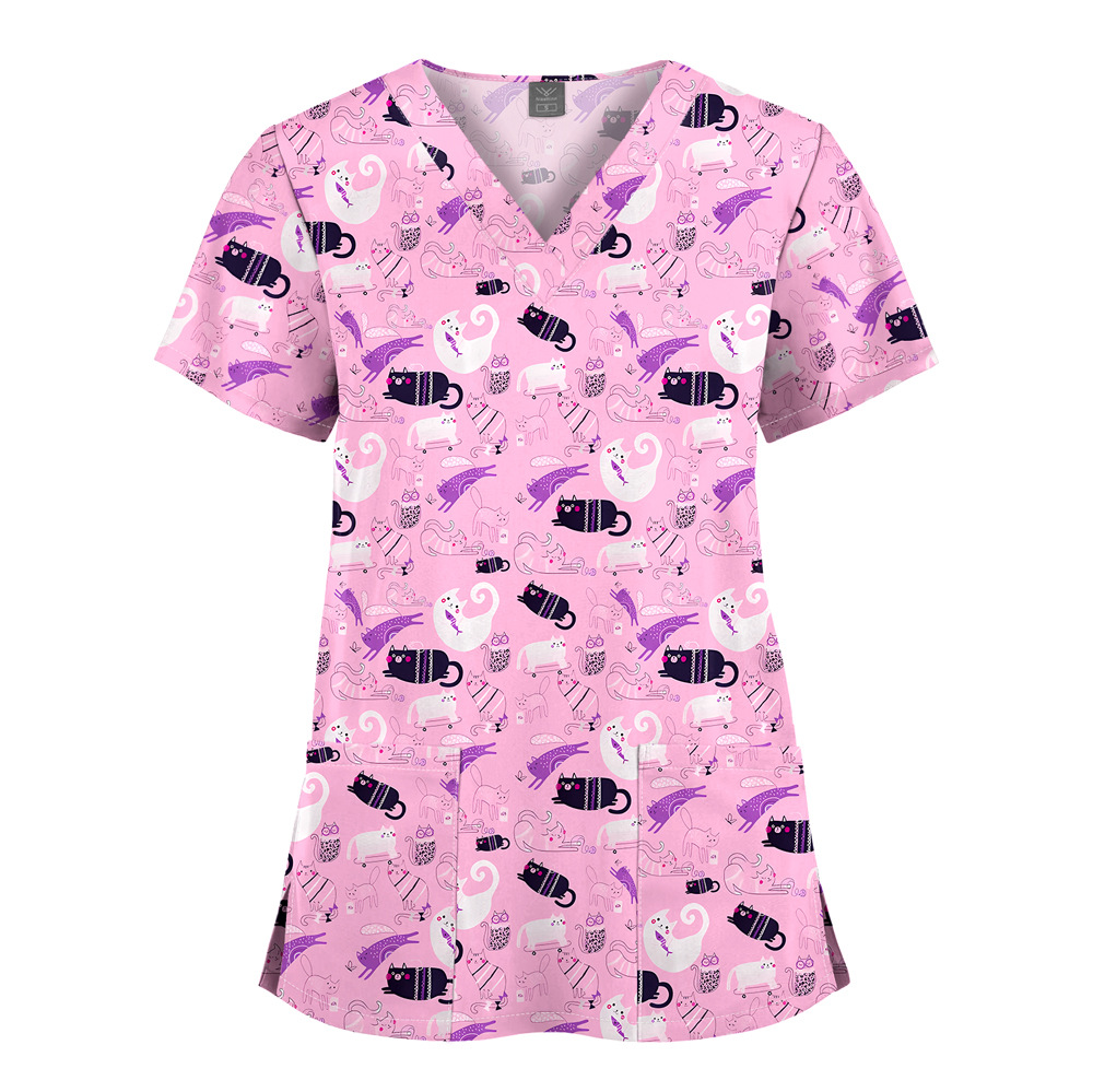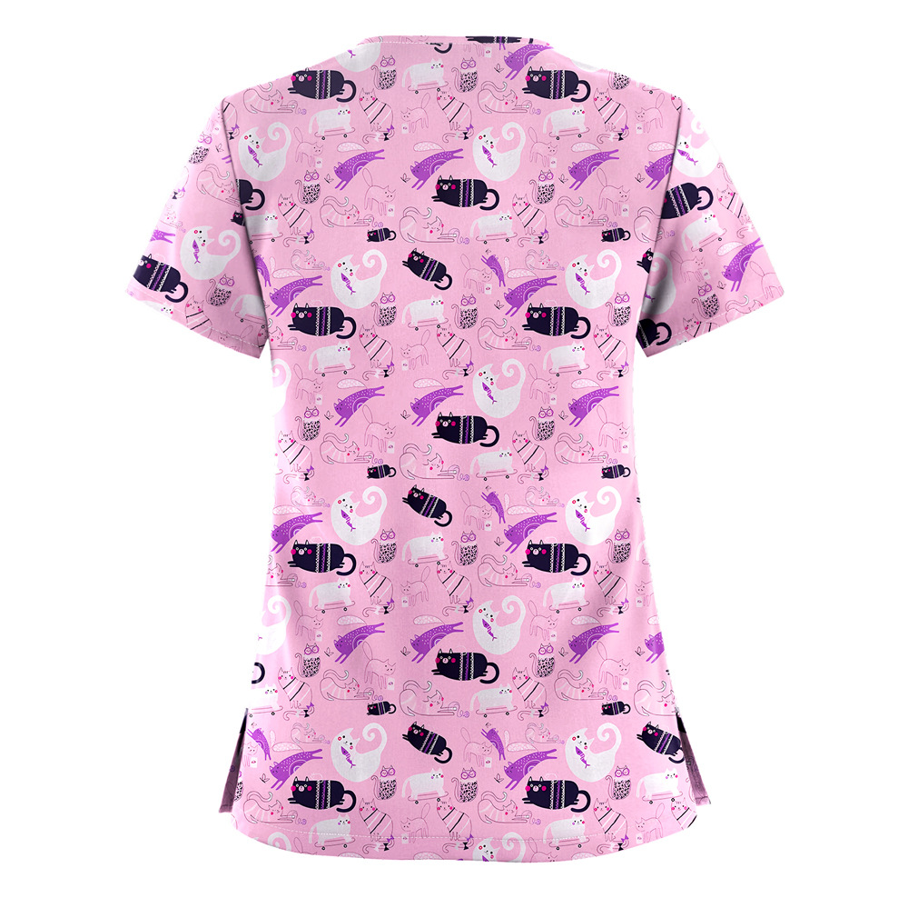 V-Neck Printed Nurse Scrub Shirt with 2 Pockets