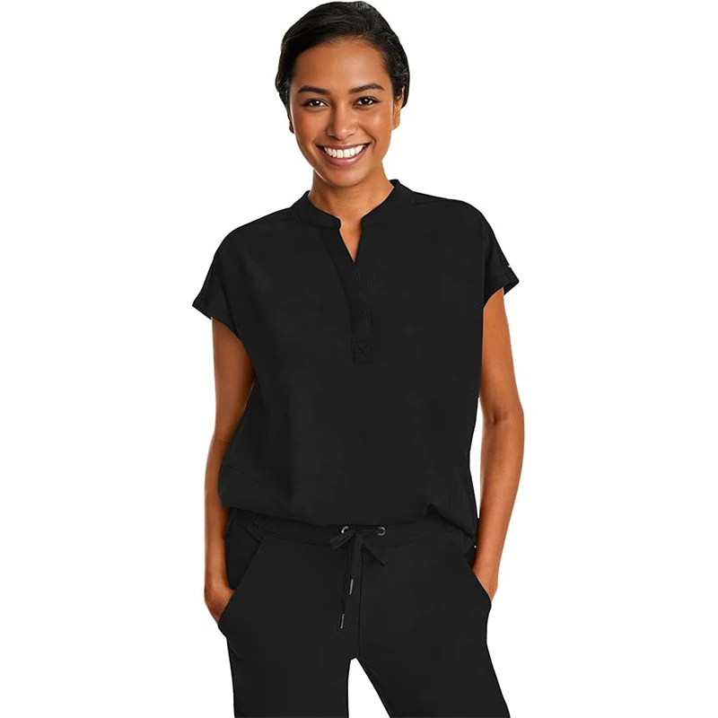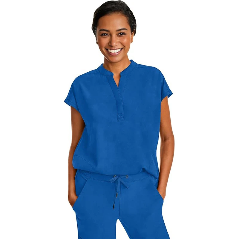 Solid Color Mandarin Collar Scrubs