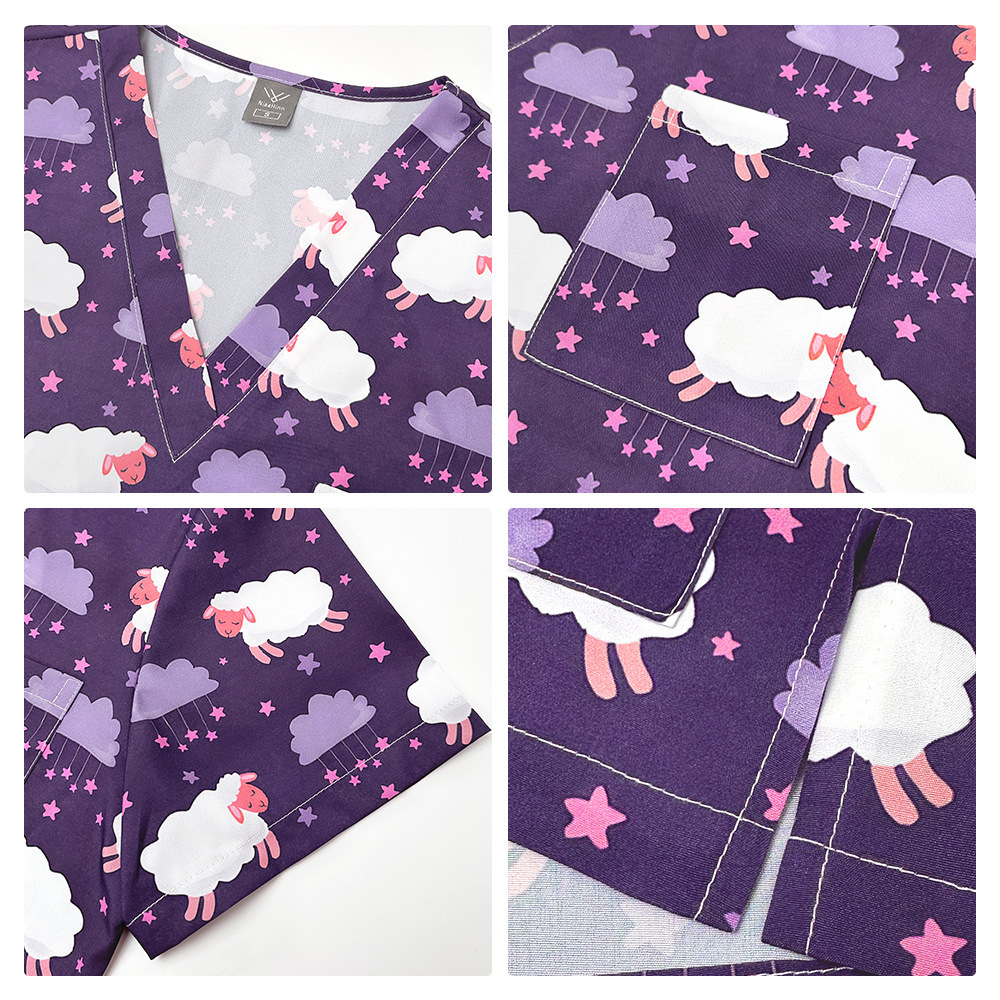 ◉ PRACTICAL POCKET STRUCTURE: The scrub top includes three functional pockets that allow you to conveniently store essential items such as pens, notepads, scissors, or mobile devices. The thoughtful pocket layout enhances work efficiency and keeps tools within easy reach.
