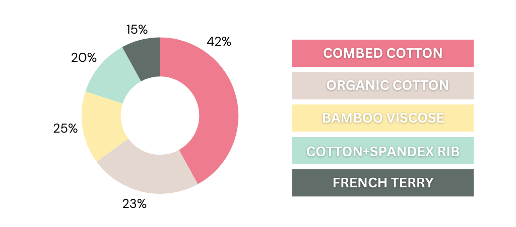- Cotton + 5% spandex rib